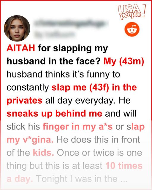 (Sorry for the tmi but I’m pissed). After the shower tonight I slapped him in the face. Not hard but hard enough to sting. His reaction was to punch me in the stomach and tell me he wants a divorce for hurting him. He’s never done that before and in my opinion wayyyy overreacted. After 11 years of marriage that was a first and he said I’m the AH. Meanwhile I’m ready to leave and take the kids tonight.I know his reaction was not okay but was I out of line? UPDATE: wow I am so overwhelmed with all the encouragement and kind posts. I had a few not so friendly ones and I wish you’d refrain from making me feel worse by saying hurtful stuff. Unfortunately this is true and I is don’t make it up. I do feel the need to clarify a few things since I seem to have not chosen the best wording in my hasty post yesterday. He has not been doing this for year. This started a couple weeks ago. We both work from home and are home 24/7. No I do not walk around naked. He’s poking my butt through my clothes so not penetrating but it hurts and he knows that My children are safe as am I. I did call police last night and had him removed from the home. I’ve started to talk to a lawyer and will move things along as needed My husband did call today and I had shut my phone off for a while, hence the late update, but he of course is apologizing and doesn’t want to divorce. He offered counseling so we will look into that. I don’t know how I feel just yet about trying to make this work but we will see.Thank you all again for reaching out. I haven’t been able to reply to everyone yet but I will try.