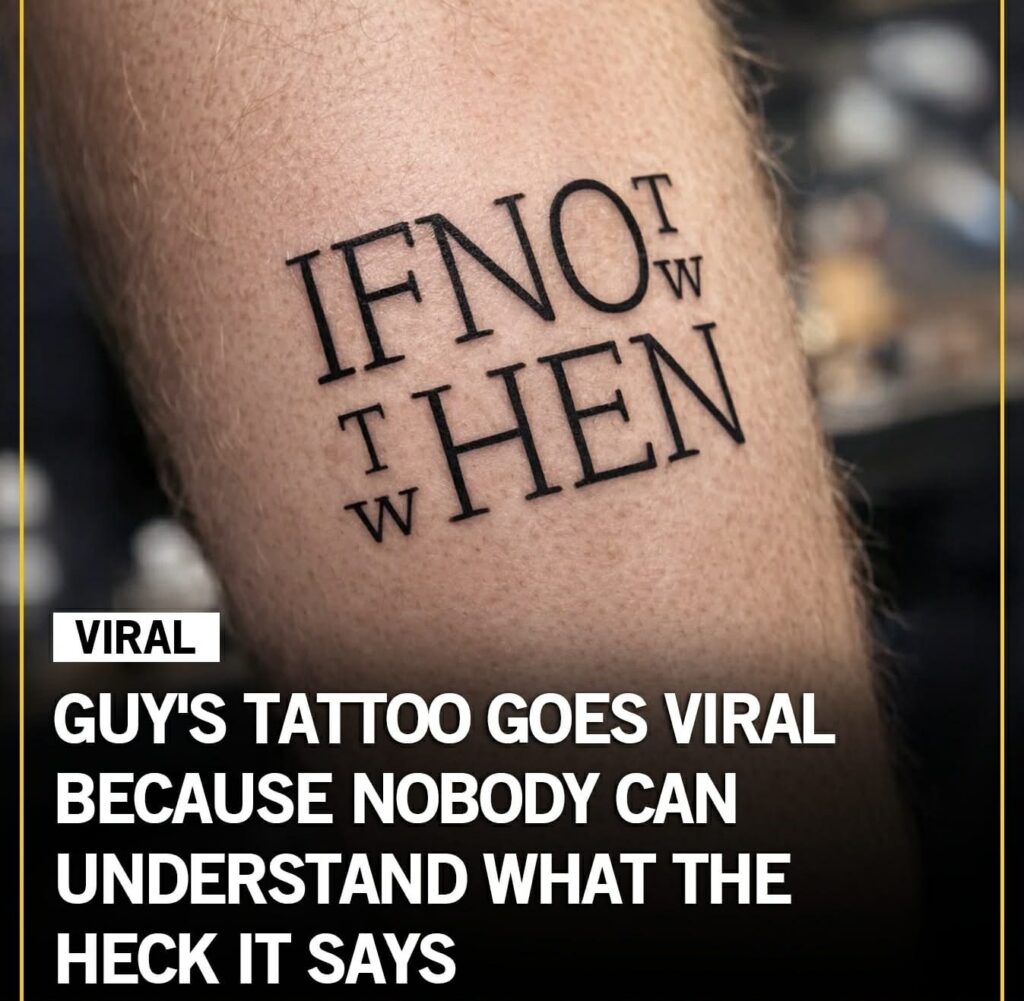 This tattoo has been making the rounds online and nobody can agree on what it actually says. Some people see it immediately. Others stare at it for minutes and still can’t figure it out. A few are convinced it’s in a different language entirely.